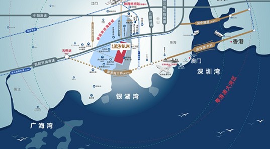 政府擘劃銀湖灣濱海新城千億配套,港珠澳大橋西延線、黃茅海跨海大橋、珠西樞紐。