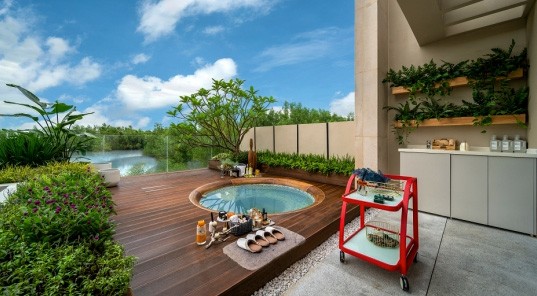 主、副樓獨立設計,超高贈送雙庭院,足不出戶即可享受濱海溫泉,約1500畝濕地環繞,私密又詩意。